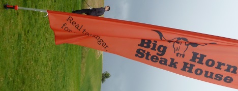 Big Horn Steak House hadde full middag ved 9. tee. Det smakte godt etter noen