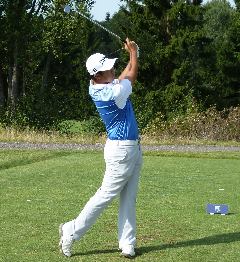 Men så fikk han en birdie på den 10. hullet og fulgte opp med en eagle på det 13. hullet og var kommet ned til to over par etter 14 hull. Dessverre kom det nye bogeyer på 16 og 17. Dermed ble det 76 slag og en plassering langt nede på listen.