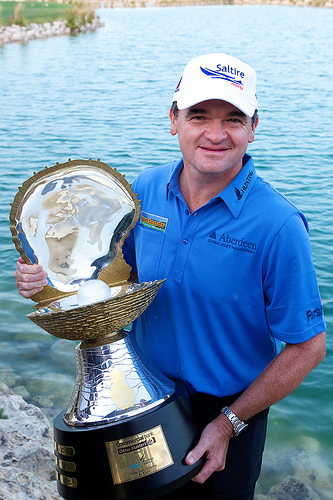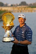 Retief Goosen hadde spilt seg opp til en andreplass midt i den andre runden, men falt litt tilbake igjen Her med trofeet fra Quatar i 2008.
