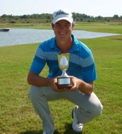 Kofstad med trofeet etter sin første seier i Italia i år i august.