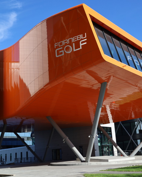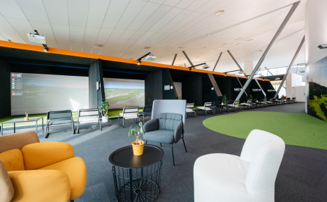 Fornebu Golf ligger i det orange signaturbygget i Technopolis noen få meter