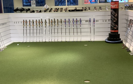 Her kan man teste puttere på Golfshopens puttinggreen