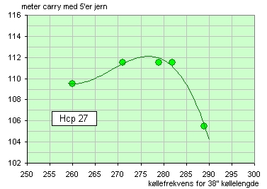 Her er valgt å vise meter carry for 5'er jern.  Tilsvarende kurver fåes for ballhastighet og presisjon, hvor presisjonen blir angitt med noe som kalles effektivitetsfaktor.  Denne faktoren er kvoten mellom oppnådd ballhastighet og mulig ballhastighet (som kan beregnes når man kjenner balltypen, effektivt kølleloft og svinghastigheten ved balltreff).