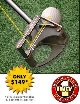 Her er kanskje løsningen for han og andre? En putter som du kan trene opp siktingen med. Tar du av siktemiddelet, er den også lov å spille med ute på banen også.