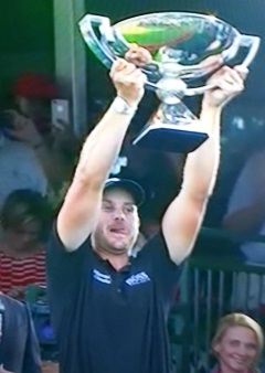 Henrik Stenson med trofeet som viser at han for tiden er verdens beste spiller. En premie for innsatsen i The Tour Championship ble belønnet med 11,44 millioner dollar.