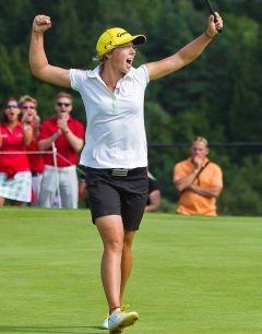 momentum and lead before she sunk another 15 foot birdie putt on the 17th to