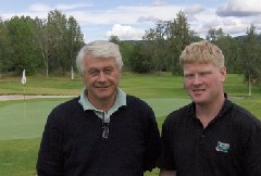 Lars Havrevold og Even Gustav Johnsrud foran kunstgressgreenen på hull nr 4 i