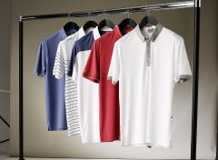 The direction of the collection’s polo-shirts for men is showcased by the