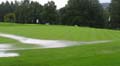 Greenen på hull 11 på Bogstad under regnbygen torsdag ettermiddag