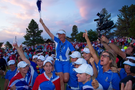 Europeerne feiret vilt etterpå. Naturlig nok. Suzann Pettersen holdt på ingen måte igjen i denne sammenhengen. Men de andre var også i opphøyd feststemning.