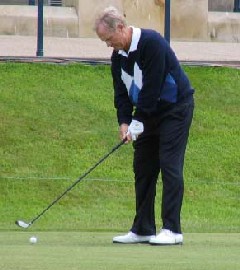 Jack Nicklaus driver ut på hull nr 1 på St. Andrews i sin farvel-Major i 2005. Foto: Asbjørn Ramnefjell
